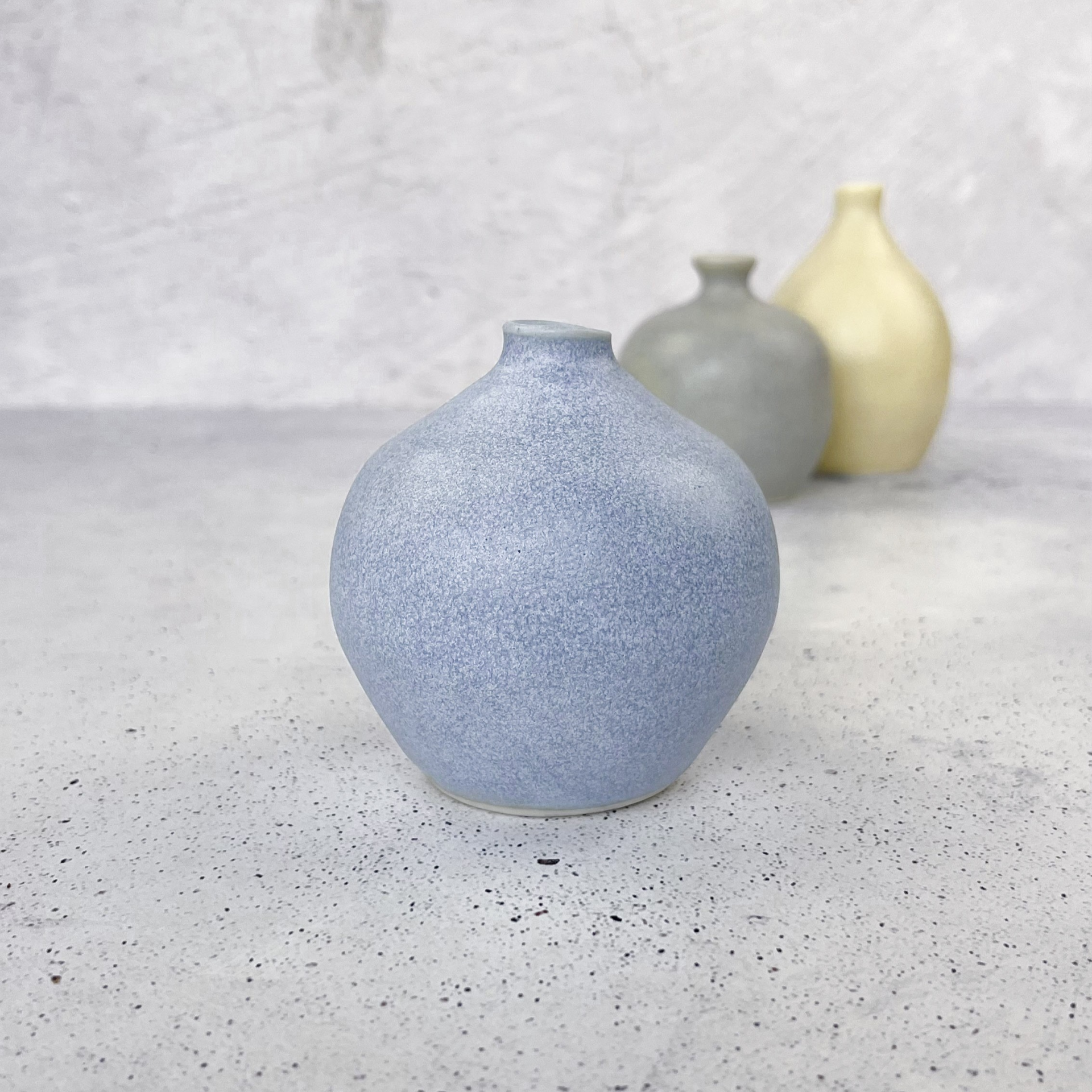 Vidrado de grés azul-claro luminoso, com acabamento sedoso e efeitos subtis.
