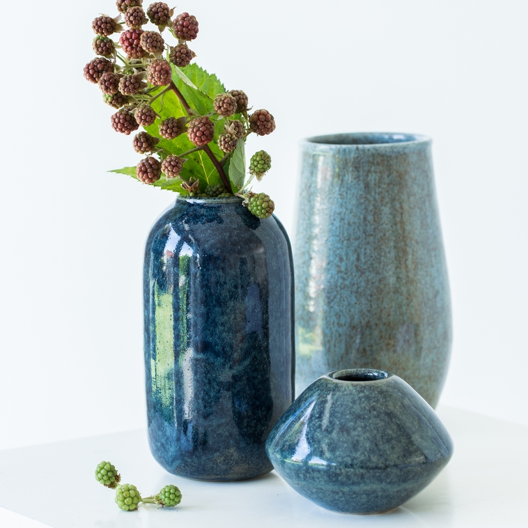 • 1250 °C: azul-preto com efeitos claros; em camadas mais espessas surgem belos efeitos de escorrimento