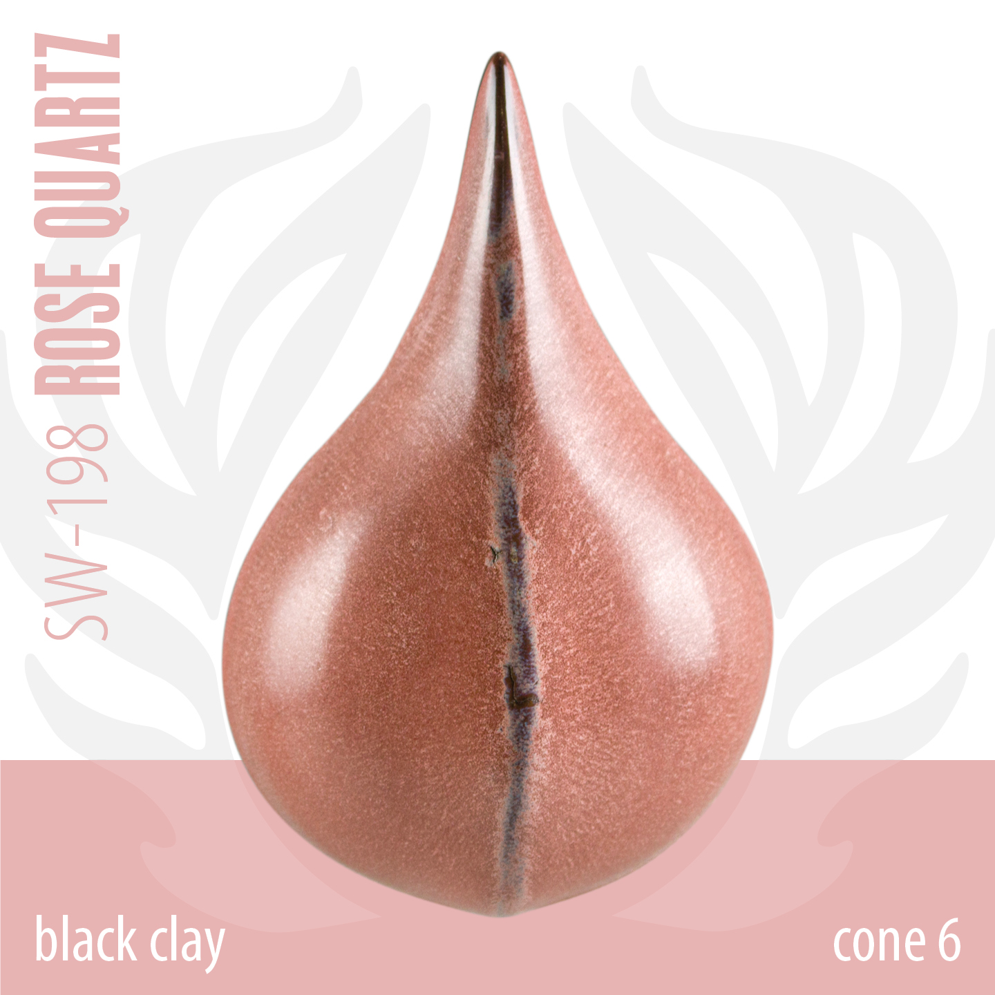 Rose Quartz é um vidrado rosa brilhante, opaco e variado, que abre sobre textura. Pode desenvolver microcristalização rosa-pastel em superfícies verticais.