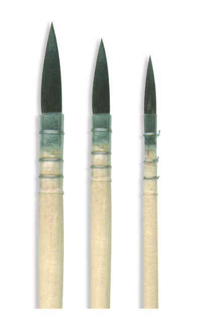 Pincel oval de ponta fina em pelo natural, com excelente capacidade de absorção e aplicação uniforme. Ideal para engobes e vidrados, permitindo tanto cobertura suave quanto detalhes controlados.