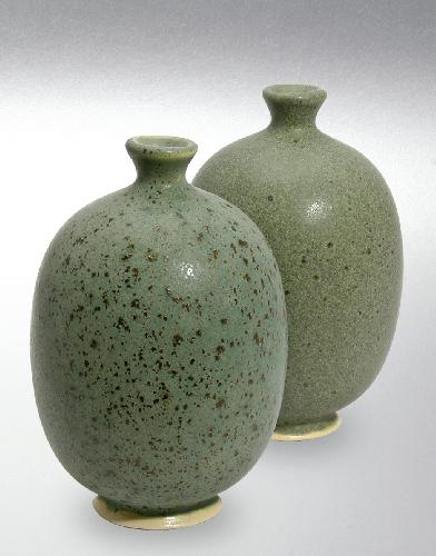 Vidrado mate de tom verde suave, com efeito castanho que se intensifica em temperaturas de cozedura mais elevadas, criando variações naturais e profundidade na superfície.