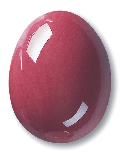 Vidrado brilhante de tom vermelho-violeta rosado, semitransparente e luminoso, com cor plena que varia subtilmente conforme a temperatura de cozedura.